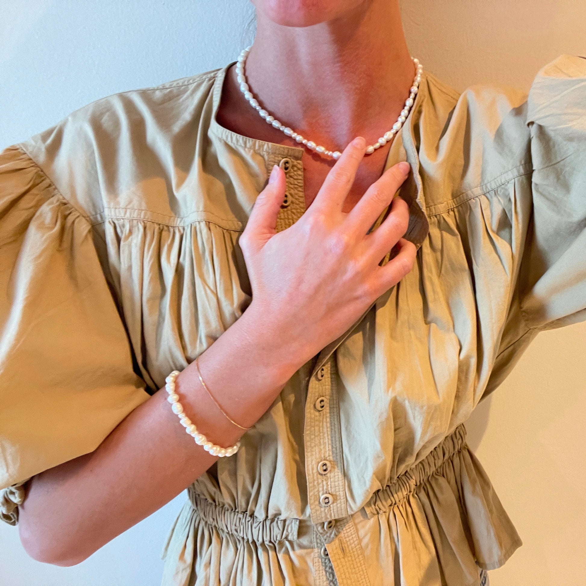 A timeless bracelet made from organic shaped freshwater pearls, chosen for their natural beauty and soft glow.